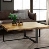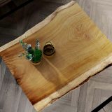 Ses bords sinueux (aubier de classe E – blanc éclatant, dur et sans aspérités manifestes) conservent la forme originale du tronc, offrant à la table un caractère unique. Ce contraste subtil entre l’irrégularité des bords et les lignes droites du reste de la table renforce son côté naturel. Harmonieuse avec la nature, elle le sera bientôt aussi avec votre salon.