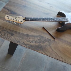 Stockage et entretien : stockez la table en intérieur, à l’abri de la lumière directe du soleil et des sources de chaleur intense (comme un poêle à bois ou un chauffage au sol). Le bois est un matériau naturel, la présence de fissures ou de gerces est donc normale. Le bois a été stabilisé dans notre atelier, ce qui minimise le risque de déformations.