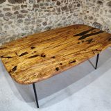 Sophistication et raffinement à portée de clics: la personnalisation sur mesure sur cette même page permet d’adapter les dimensions ainsi que les couleurs du piétement selon vos préférences. Tout est réalisé en interne, votre table sera complétement unique. Le soin apporté à votre commande concerne toute notre équipe, de la fabrication avec le plus d’opérations manuelles artisanales à l’envoi soigné de votre table. Gardez en mémoire que nos bois (sciés, séchés et optimisés en interne) sont hautement sélectionnés et cela se répercute indéniablement sur le résultat final pour un rendu insolite inimitable. Un circuit donc, le plus court possible pour une consommation éco-responsable exemplaire.